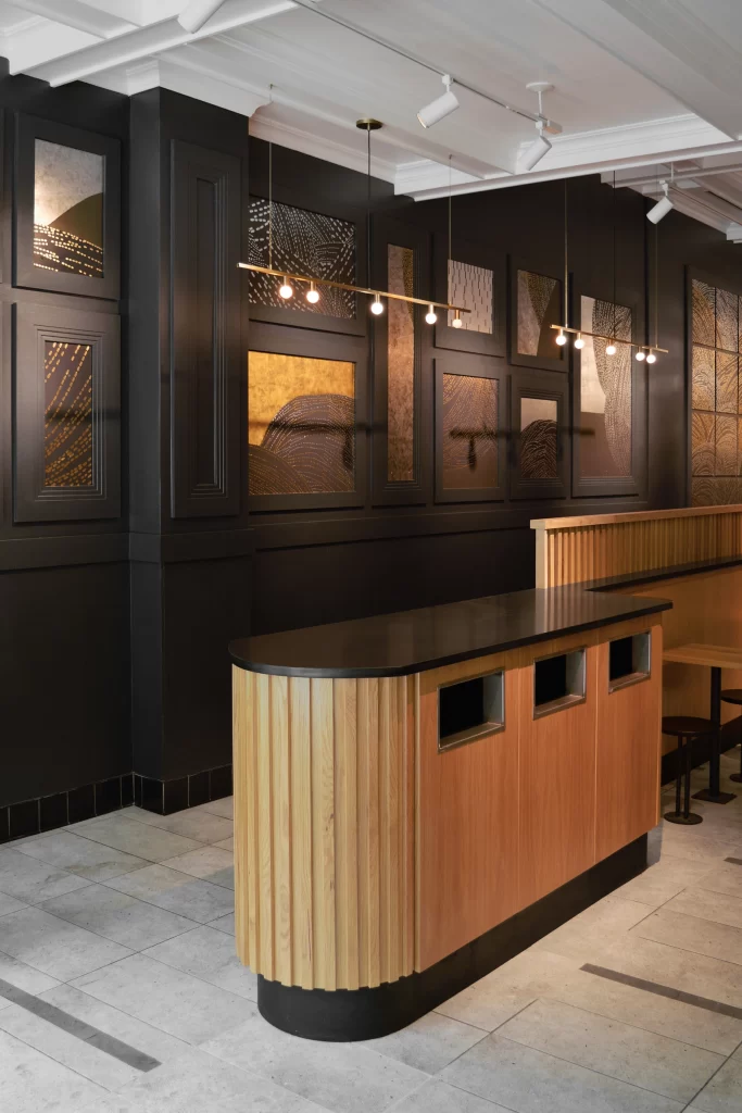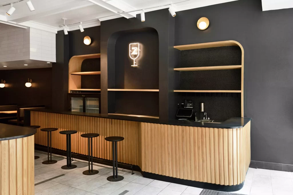 The space, formerly occupied by Accademia Barilla and Danny Meyer-backed Tender Greens, went through several transformation over the last few years. The project goal was to integrate in the design pre-existing architectural and decorative elements to create e new visual language that elevates the brand with respect of its identity. That was achieved thanks to the use of finishes that are part of the visual identity of Zucker's such as natural oak, dark wall colors, blackened steel, and subway tiles. Art and furniture, entirely custom made in Italy by ETAMORPH, create a strong bond of continuity with the other stores in the city.
